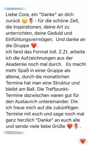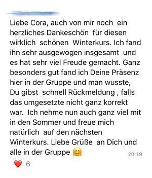 Falls du neu in die Gruppe 2 einsteigen willst, empfehle ich dir als Vorbereitung die Aufzeichnungen der ersten 5 Workshops (Gruppe 1) anzuschauen und mitzumachen (letzter Winterkurs 24-25). Dann bist du auf dem gleichen Stand der TN, die weitermachen und kannst entspannt starten.
