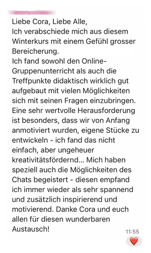 - Digitale Vernetzung auch zwischen den Kursen über eine Signal-Gruppe (Chatroom)